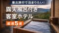 東北の自然と温泉を満喫したい方へ。楽天トラベル掲載の露天風呂付き客室がある人気宿を5つ厳選してご紹介。カップルや記念日、プライベート重視の癒し旅におすすめのホテルや旅館をまとめました。