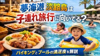 夢海游 淡路島は子連れ旅行に向いているのか気になる人へ。バイキングの内容やプールの使いやすさ、海が見える立地、家族で泊まる前に知っておきたいポイントを分かりやすく解説します。